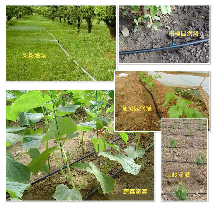 2、滴灌:滴灌利用管道系统和灌水器等设备,把水和作物需要的养分一滴一滴均匀缓慢地滴入作物根部土壤中的灌水方法。水通过滴头源源不断地滴入土壤,使果树根系分布层的土壤一直保持*适宜的湿度状态。滴灌是一种用水经济、省工、省力的灌溉方法,特别适用于缺少水源的干旱山区及沙地。水的利用率可达95%。应用滴灌比喷灌节水36%~50%,比漫灌节水80%~92%。由于供水均匀、持久,根系周围环境稳定,十分有利于果树的生长、发育,一般增产25%以上。近年的实践中看到,滴头的质量至关重要,质次者易发生堵塞,更换及维修困难。此外,个别果园管理者习惯于大水漫灌,使用滴灌时昼夜不停,使土壤水分过饱和,造成湿害。滴灌时间应掌握湿润根系集中分布层为度。滴灌间隔期应以果树生育进程的需求而定。通常,在不出现萎蔫现象时,无需过频灌水。