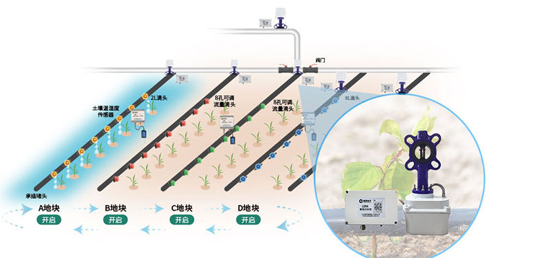 2.适用性强:应用场景多样,比如草地、花木、农田、温室大棚、梯田、山坡等,选配各口径的蝶阀、脉冲阀、球阀等阀门控制器,满足不同场景下的灌溉需求;