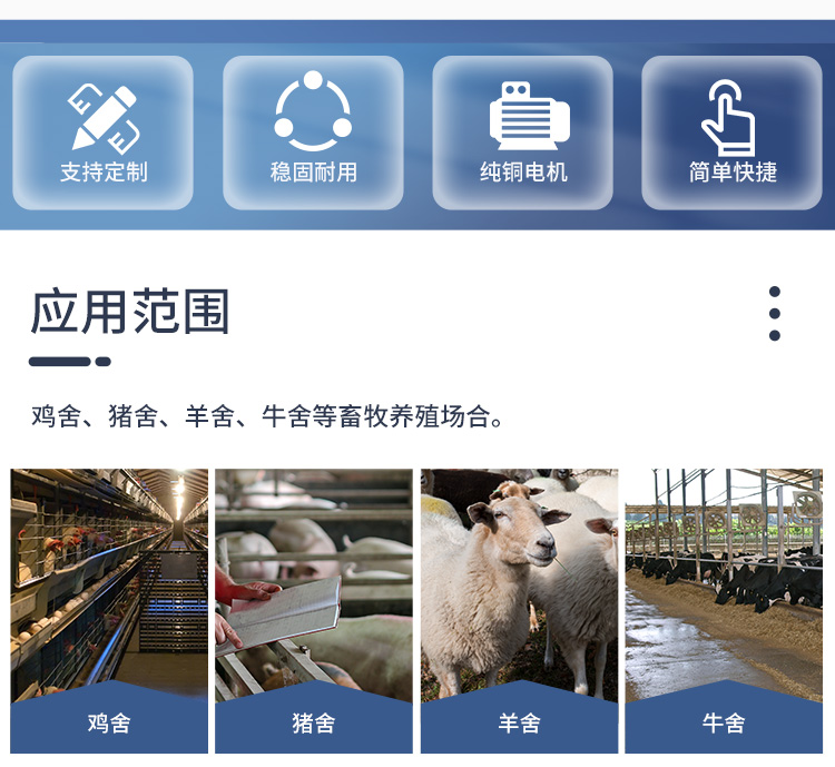 采用先进材料构建,内部集成高效管理系统。基于精密的温控、通风与光照调节技术,为鸡群打造最适宜的生长环境,促进健康成长与高产。广泛应用于肉鸡、蛋鸡的规模化、自动化养殖。