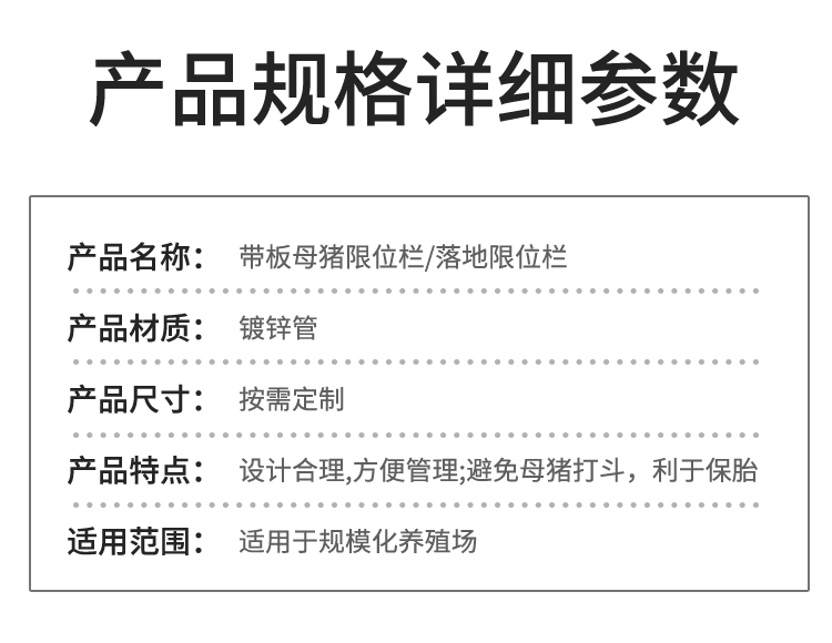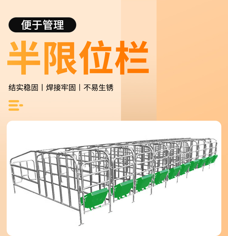 在于,利用半限位栏的灵活分隔,既能在饲喂时限制母猪活动,减少争食现象,又能在非饲喂时段提供足够的活动区域。应用范围广泛,适用于各类规模化养猪场。