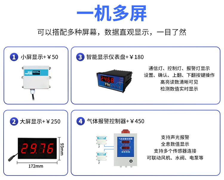 采用电化学或紫外线吸收法,精准监测环境中臭氧浓度,转化为电信号输出,具备高灵敏度和良好的选择性,能迅速响应臭氧变化。广泛应用于空气质量监测、室内空气净化、工业生产控制等领域,
